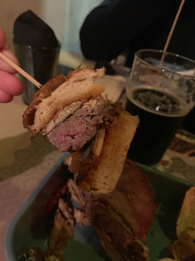 Arrivato da Brescia sono stato portato in questo pub da collega del posto, beh esperienza molto bella, tutto in stile pub ma con salette molto ricercate, frigo con carne in bella vista e molto invitante, ho mangiato degli assaggi molto particolari con un pane bao, mini hamburger e salse particolari ed altri molto sfiziosi e buoni (non ho buona memoria per i nomi), sia il titolare che la collaboratrice, molto attenti e disponibili oltre che veramente preparati sul menù e sulla spiegazione di ogni voce relativa ai piatti proposti nello stesso.. Una menzione particolare va alla birra, dopo un trio di assaggi di alcune birre tutte molto buone e particolari, ne ho individuata e scelta una dal gusto affumicato veramente speciale e da me mai provata.. Insomma, un luogo accogliente, persone speciali, menù intrigante e sopra le aspettative, bello tutto molto bello Devo tornare a Corato sotto Natale e questo Pub sarà meta sicura!! Complimenti a tutto lo staff, ci vediamo presto, anzi...
