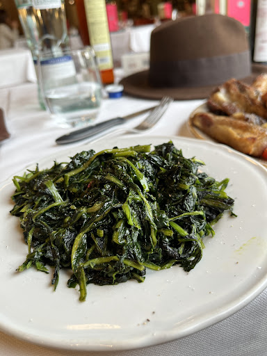 I giovani camerieri erano tutti palesemente inesperti e nel pallone malgrado il ristorante non fosse in una giornata di pienone. Una quantità tali di errori l'ho vista solo su alcuni film comici. Il rapporto qualità/prezzo assolutamente da dimenticare. Il sapore delle pietanze è buono ma presentati con uno stile anni '80 ormai obsoleto e il prezzo...beh che dire?! 1 antipasto misto di terra 1 stracciata al tartufo (non ordinata) 1 antipasto di mare 3 verdure grigliate 3 taglietelle al tartufo estivo 4 tagliate (ottime) 1 agnello (va e vieni dalla cucina) 1 bottiglia di vino (vedi sopra) 2 bottiglie di prosecco 3 bottiglie di acqua 7 dolci 5 caffè