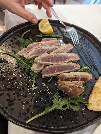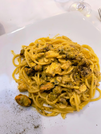 Read moreBreve storia triste: ordino la carbonara di pesce con bottarga, mi arriva una carbonara di pesce con spolverizzato sopra il pepe nero anziché la bottarga! Un quintale di pepe giacché dalla cucina lo hanno scambiato per bottarga...ma dico io come si fa?? Ho sbagliato a non mandarlo indietro,per mangiare insieme agli altri e perché pensavo che la bottarga fosse nel condimento,ma data la quantità di pepe sopra,che di solito si utilizza solo per decorare il piatto,mai in quantità eccessive sui piatti, mi era venuto il dubbio ci fosse stato un errore. Non finisce qua: due piatti di penne ( piccolini) al pomodoro per i bambini di 3 anni 20€! Ben 10€ a piatto per una pasta al pomodoro per bambini così piccoli! Ma solo a me sembra esagerato? Ma la cosa ancora più bella è che la tipa alla cassa ( tra l' altro la stessa che ha preso l' ordine e portato piatto a tavola) mi chiede " Andava tutto bene? " Solo dopo aver battuto lo scontrino e aver messo la mia carta nel pos...ma che senso ha? Devi chiederlo prima e limare subito lo scontrino in casi simili. Vabè, saremo stati sfortunati, ma davanti a un errore così grosso del mio piatto ci stava quantomeno limare lo scontrino, fermo restando che per me €10 per una pasta al pomodoro per bambini è...