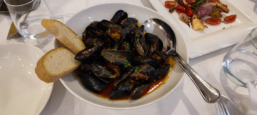 A great place for seafood and Pizza. (We didn't try the pasta, but were told it's great as well) If you're looking for a romantic or family night out, try to catch a table outside because inside it gets REALLY loud. This dampened the experience a bit, because at some point everybody was yelling and we felt a bit overwhelmed by it. (Hence the three stars for ambiance). The service was quick and friendly. However we were sitting in front of empty glasses for quite some time and never asked if we wanted to order seconds. But hey, the place was packed too, so...