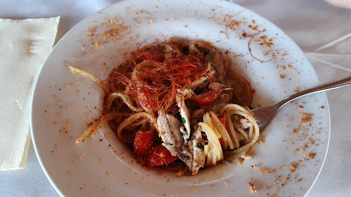 Read morePiù che esperienza la definirei ODISSEA 🫣. Arrivati alle 20:30, con un tavolo prenotato, entriamo in una location di alte aspettative, non c'è una persona che ti accoglie, ci guardiamo intorno e intravediamo una persona dello staff, ci fa accomodare (sono già passati 15min nel mentre). Passano altri 20minuti arrivo un altro cameriere a prendere la comanda. Dentro di me penso finalmente iniziamo a mangiare, mi sbagliavo! Porta il vino( ordinato un bianco ma arrivano i calici per il rosso, fa niente l'errore ci può stare) lo apre e senza farlo assaggiare e mescerlo nei bicchieri, scaraventa la bottiglia nel ghiaccio. Arrivano gli antipasti, non abbiamo il pane, si va alla ricerca di qualcuno in sala per chiederlo, finalmente intravediamo un ragazzino, qualcosa si può mangiare qualcosa no, fa niente c'è il secondo. Sparecchiano e portano via le posate. Ordiniamo un'altra bottiglia di vino, la cameriera l'appoggia sul tavolo e consegna le portate ad un altro tavolo, dopo 10minuti viene ad aprirla, senza portare le posate, vabbè arriveranno con il secondo. Invece no! Portano le grigliate ma le posate non pervenute! Ovviamente prima che il cameriere sparisce di nuovo le chiediamo. Grigliata immangiabile, ma non posso farla riportare in cucina dello staff neanche l'ombra. Vado a pagare, faccio notare la situazione e da lì comincia uno show, richiamando lo staff...