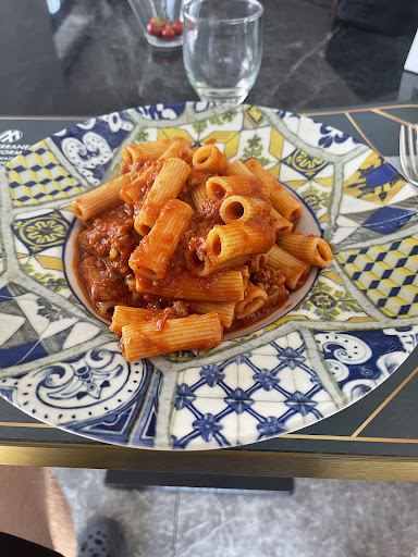 Außerdem hatten wir Rigatoni mit Bolognese, das Bolognese war hart wie Stein und ungenießbar....
