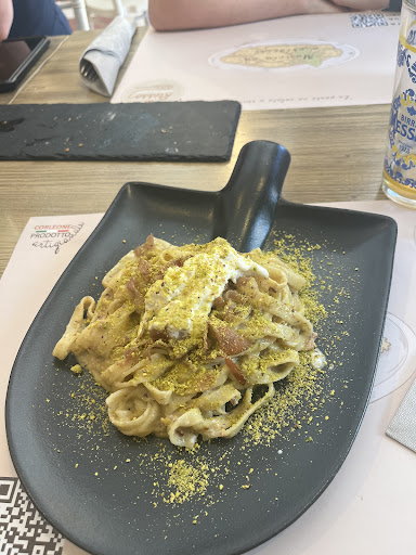 Read morePiacevolissima scoperta. Io e il mio ragazzo siamo stati piacevolmente ed eccezionalmente accolti dal proprietario nonostante fossero le 16 del pomeriggio per pranzare presso il suo locale. Un pastificio artigianale che sa di qualità e storia siciliana. Oltre al buon cibo con salumi e formaggi freschissimi e pregiati, bruschette fatte in casa con pane locale e un eccellente primo consigliato da loro, abbiamo avuto il piacere di scambiare quattro chiacchiere con una persona dedita al lavoro e fedele alle tradizioni oltre che cordialissima ed educatissima. È stato un piacere conoscere anche l’ottima cuoca. Entrambi ci hanno raccontato la loro storia e abbiamo con piacere ascoltato e condiviso piacevolmente questi momenti.