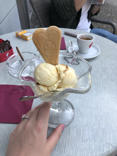 Read moreSe il paradiso non offre di meglio di questo locale mi fermo all'inferno. Domenica soleggiata, gita in mountain bike. Mio marito suggerisce un gelato per pranzo. Ci fermiamo in questo locale. Caffè ben arredato, ampia scelta di dolci, gelati e anche salato. Personale gentile. Ordiniamo due gelati e un caffè salentino. Mi arriva una coppa gigante, preparata benissimo con i gusti che avevo chiesto. Lo stesso per mio marito. Non capisco come sia possibile che io abbia pagato così poco , a mio giudizio, per uno dei gelati più buoni che abbia mangiato. Cremino nocciola e cookies con panna e caramello. Assolutamente divino. Sicuramente ci torneremo e lo...