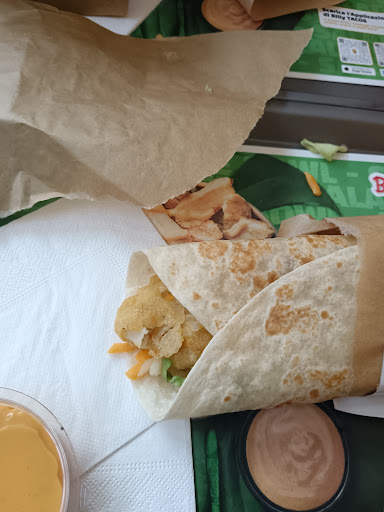 Read moreNon sono solito lasciare recensioni negative, ma qui è doverosa. Menù da 7,20 Combo wrap, con wrap, nachos, salse, (pagate a parte) e bibita. Attesa 16 minuti e quando arriva la sorpresa: Wrap gelato con formaggio cheddar completamente congelato e insalata appena tolta dal frigor. A mia lamentela del fatto che era freddo mi viene risposto da un commesso scortese " è così, è scritto sul menù che è fresco" ( ma sei serio? Ma davvero non hai capito che fresco è l'ingrediente e non la temperatura del wrap???). E dulcis in fundo non ci sono nemmeno arrivati i nachos, così ho portato a casa le salse. Nelle foto si vede il cheddar gelato a strisce e le due salse non usate per mancanza di nachos (pagati!!!) Perciò POSTO DA DIMENTICARE!!...