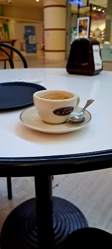 UN CAFFE' IN PIAZZA Il bar si trova nel cuore del centro commerciale, piazzato lì come un’isola in mezzo al mare del consumismo. Il bancone a semicerchio domina la scena, con la parte bar, la cassa e la vetrina delle brioche. Attorno qualche tavolino, invasi dal traffico pedonale dei clienti del Globo. Privacy zero, atmosfera da Grand Central Station. Bevi il caffè mentre una signora col carrello ti sfiora la giacca e un bambino in monopattino ti guarda l’espresso.