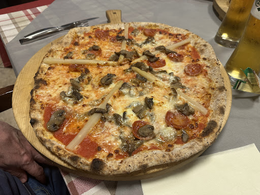 La cena in questa pizzeria con gli amici è stata un'esperienza davvero piacevole sotto tutti i punti di vista. Innanzitutto, le pizze ci hanno piacevolmente sorpreso per le loro dimensioni generose: un ottimo punto di partenza per una serata conviviale. Ma la quantità non va certo a discapito della qualità. Ogni morso rivelava la freschezza e la bontà degli ingredienti utilizzati, dai pomodori saporiti alla mozzarella filante, passando per i condimenti scelti con cura. L'ampia scelta di pizze presenti nel menù è un altro aspetto che merita una menzione speciale. Il listino è davvero fornito, spaziando dai classici intramontabili a combinazioni più originali e sfiziose. C'è solo l'imbarazzo della scelta, il che rende questa pizzeria adatta a soddisfare i palati più diversi. Infine, un plauso va fatto al rapporto qualità-prezzo, che ho trovato assolutamente eccellente. Mangiare una pizza così buona, con ingredienti di qualità e in un ambiente accogliente, senza spendere una fortuna, è sicuramente un valore aggiunto. Posso dire con certezza che questa pizzeria è diventata un nuovo punto di riferimento e che non vediamo l'ora di tornarci per assaggiare altre specialità del...