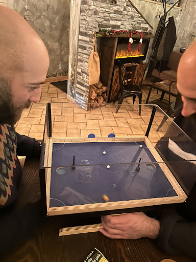 Da un lato, l’AMBIENTE pensato (costruito) e curato nei minimi dettagli per trasportare il cliente in un tipico pub islandese: dal divano in camoscio con il caminetto, al bancone con i corni originali, ai tanti dettagli in legno realizzati dai proprietari, le pareti decorate a mano e i diversi giochi da tavola di ispirazione nordica.