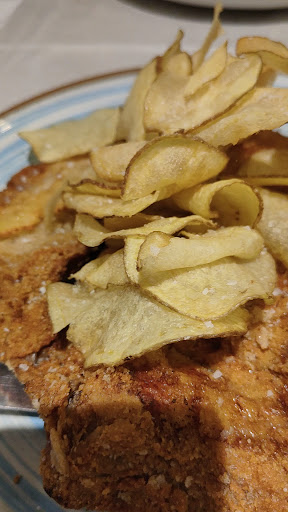 Un ristorante tipico milanese lungo il Naviglio Grande a Corsico. Il parcheggio è molto difficile e arrivarci non è proprio comodo, ma ne vale sicuramente la pena. Il menu propone piatti tipici della cucina lombarda e milanese, che spaziano dagli antipasti di salumi e formaggi alle classiche polpette milanesi, il risotto e la costoletta. La location è carina, anche se si avverte un po' l'odore di fritto dalla cucina. I piatti che abbiamo ordinato - risotto alla milanese e costoletta di vitello con chips - erano davvero buoni, con una particolare menzione per il risotto, che era eccellente. I tempi di attesa sono stati giusti, considerando la preparazione del risotto, e ci hanno servito delle chips come benvenuto per ingannare l'attesa. Il servizio è stato attento, discreto, estremamente disponibile e anche simpatico. L'unico lato negativo sono i prezzi, un po' alti rispetto alla media. Credo che non siano del tutto giustificati, sebbene la qualità dei piatti e del servizio fosse buona. La possibilità di prenotare su The Fork è comunque un bel vantaggio. Nel complesso,...