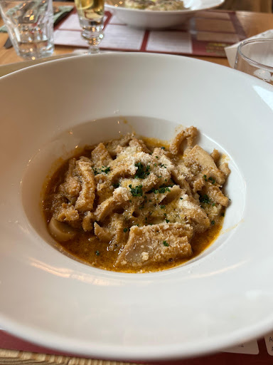I went with my wife and in-laws, the ambiance was nice and cozy. We ordered 2 pretzels but I should have ordered 4, hahaha. It was so good. I was missing some butter to go with them, but ok. The surprise of the day (in my opinion) was the dish called Tripas, which I have ordered. (Honestly I was with a bit of hesitation, since I remembered my mom’s dish, back in the days, and to order a dish like this in a restaurant they must clean and cook it very well). Nevertheless, my hesitation went away when it was also recommended by the waiter (graciously recommended me a creamy polenta as side dish) and he nailed it. Everything was super well done and delicious. The combination matched superbly and it was for sure the most delicious tripa I’ve ever had (after my mom’s, of course, hehehe). Compliments to the chef....