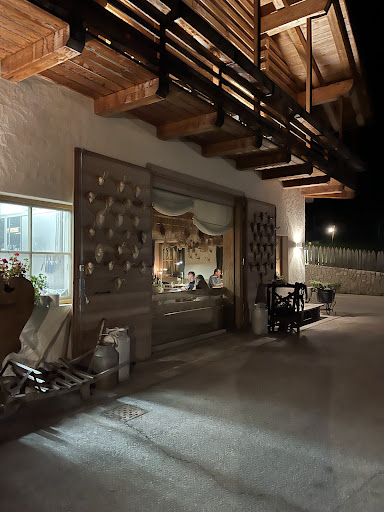 Set just outside Cortina, the restaurant sits at the foot of a quiet, alpine slope—peaceful and far removed from the town's bustle. The interior blends Scandi hunting lodge with rustic alpine charm: lots of wood, animal skins, and antlers—not ideal for vegans, but atmospheric nonetheless.