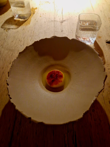 The cheese course was served in a literal cheese cave—a little awkward but very memorable. The ‘bianco’ cheese was a standout: earthy, pungent, and delicious (tasted like a cow shed, with a deliciously sweet top note of hay). Pudding included a flawless crème brûlée and a warm brioche pinwheel with brown butter—a rich, satisfying finale.