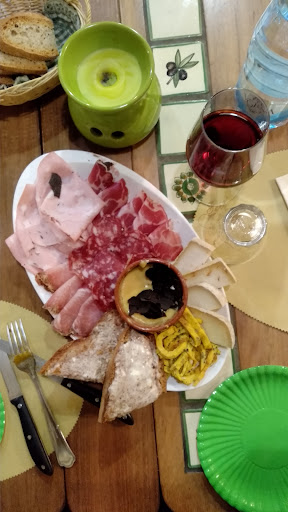 Read moreEs un establecimiento con encanto. Lo ideal es llegar a Cortona y dejar el coche en el parking mas alto, junto a la Porta Colonia en Piazza Mazzini. El restaurante de allí esta a 600m. La decoración es muy peculiar, basada en sus campos y costumbres. Los vinos son espectaculares, la comida nos gustó mucho debido a su matiz casero y a su elaboración con productos de calidad de la región. Nos pedimos una ensalada de bacalao, un carpaccio de ternera y un potaje de verduras delicioso ( para mí genial después de tantos dias sin probar plato de cuchara). Los postres caseros eran estupendos también, comimos una tarta de chocolate y un tiramisú. La camarera muy simpática y servicial. En general calidad -precio, todo 45€. Además no pagas por el cubierto como en locales proximos. Volveria de nuevo, muy recomendable. Por cierto el baño de chicas...