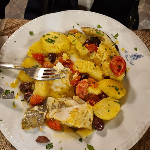 As an American traveling in Italy for the first time, I regret not having learned more Italian, but I absolutely do not regret dining in this fine establishment. Quick note to other Americans: the entry door swings in, so save yourself some embarassment and push rather than pull if you want to eat indoors. Once we were situated, we began with mixed antipasti, a delightful selection of cured meats, cheese, marinated vegetables and warm appetizers. I not sure what everything was that we ate, but it felt so much like eating at Nonna's house that I cried a little. For primi, we shared a pasta in creamy tomato sauce with bacon. Creamy sauces aren't usually for me but in this case, the rich flavor and smooth texture knocked my socks off. Don't forget to add the spicy peppers a little at a time to make it perfectly piquant. For the main course, we had the roasted pork shank. There are no words to describe the spectacular presentation and amazing flavor of this dish. Just imagine the anticipation of Thanksgiving dinner only swap porky-goodness for boring turkey. Sadlly, we were too full for dolci. Everyone was patient with and kind to us. I'm so grateful that the kind staff at the Hotel Royal recommended this restaurant. I came to Calabria to better understand where my family came from and this meal proves that food has a way of touching the soul. Thank you for a truly...