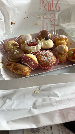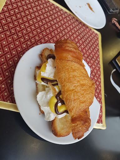 Read moreAndati una settimana fa circa con il mio compagno per fare una buona colazione domenicale... abbiamo preso un croissant alla crema chantilly con fondente. Giá agli occhi nel vederle mentre ce le portavano una delusione, per poi vedere come si vedrà nella foto che è stata messa la panna montata di fondo(che sembrava molto quelle delle bombolette, era aria nel metterla in bocca) sopra messa così della crema pasticcera e per finire qualche striatura di cioccolato... bocciata proprio..la crema chantilly non è così assolutamente. In luogo dove c'è scritto che è anche pasticceria mi aspetto molto di più,sopratutto quando viene elencata come specialità e al costo di 2 euro l'una. Anche la presentazione non è delle migliori,un panino, poiché...