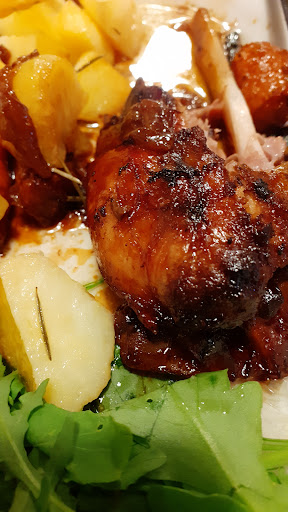 Dopo il ricco e squisito antipasto dal quale non fate mancare i fagioli con verdure dal sapore intenso di Calabria, come primo ho assaggiato le pappardelle molto ben fatte e gli gnocchi al sugo maiale davvero molto saporiti e per palati in cerca di sapori forti. La cottura dello stinco di maiale era perfetta con un sapore ricco che ben si sposava con il rosso vino di Calabria. L'impiattamento è classico ma non pacchiano. Ha chiuso la cena un buon pezzo di cheesecake ai frutti di bosco.
