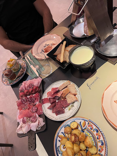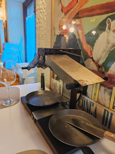 Read moreRistorante a 5 minuti in macchina e 20/25 a piedi dal centro Courmayeur. Abbiamo voluto provare questo posto per la raclette. La scelta è alla fine ricaduta sul loro menù degustazione che comprende: raclette, fonduta di fontina, cotechino con pan bauletto, patate da immergere nella raclette, tagliere di salumi (salame, lardo, prosciutto crudo e cotto, mocetta, coppa), giardiniera e castagne. Compreso anche il dolce, è possibile sceglierlo tra tutti quelli presenti nel menù. Tutto buonissimo e di ottima qualità. Le porzioni sono generose, a fine pasto sei sazio. Il prezzo è di € 40 a persona, escluso il bere. Personale gentile e attento. L’unica nota “”negativa”” riguarda il locale: c’è poca distanza tra i tavoli e si crea un po’ di casino a livello sonoro...