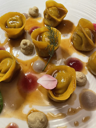 Amazing mix of different food materials while dishes/food with strong flavour are definitely tasty, e.g. pate with macaron, caviar, red meat..., the dishes tasted less strong are absolutely fascinating and creative, and must be tasted slowly to feel the synergy (e.g. the appetizer of poultry with warm potato juice)! the bread tasted wonderful had tried pigeon as the main course, absolutely marvellous! no matter how, don't miss the desserts. the smoothness of gelato suggested the use of a lot of fresh product and great effort and determination to get the best about the service, the staff looked serious but were very professional. As the restaurant was not totally full on the night i patronized (due to the very end of winter season), Egon (son of Monica the owner ) had time to explain to me that another staff might not fully understood English so the response might be a bit cold. For me, English is not mother tongue as well, I fully accepted and understood. Also, in a famous restaurant with guests from many different countries, I reckon different staff speaking different languages is very reasonable. Also, I fully accepted that there should not be one and only one standard of service quality. The restaurant is absolutely amazing, thanks to the Chef Stefano and all the kitchen staff, Monica the gorgeous lady and Egon the caring younger generation and his team of staff. Everything was fantastic and I wish to visit again and again with more friends. (not sure if have luck to reserve a table then, haha,...