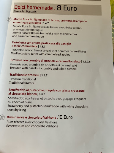 Questo bel posto te lo devi meritare… soprattutto se sei un “viziato” come il sottoscritto… prima devi prenderti una funivia ( soffro di vertigini), poi tocca farti una passeggiata panoramica sopra la neve e sotto le stelle ( son pigro e non amo camminare) …. Devo però ammettere che i miei sforzi son stati decisamente ripagati… Il locale è in una baita. L’arredamento è tipicamente montano, di gusto. Molto pulito. Essendo appassionato di vini e spesso (lo confesso) oltremodo pignolo ed esigente, ho torchiato la proprietaria sommelier perché avevo voglia di una bottiglia di vino valdostano che fosse buona ma anche originale e magari pure da qualche raro vitigno autoctono… Oltre a sopportarmi pazientemente nei miei sproloqui, la bionda sommeliera mi ha proposto una carta dei vini davvero notevole per originalità dei produttori ( specialmente locali e di piccole dimensioni) e assortimento dei vini. La bottiglia che mi ha dispensato era davvero notevole oltre che rara: rouge d’antan ( mix di vecchie vigne di varietà autoctone) di una micro-azienda locale (Mont rêve) introvabile pure ad Aosta… finita tutta e anche troppo in fretta… Lato cucina son stato non meno sorpreso… mai pensavo che un ristorante sulle piste potesse offrire questa qualità… materie prime selezionate ( il mais della polenta ad esempio viene da un frantoio artigianale che produce e seleziona solo varietà antiche specifiche da polenta, la carne è di piccoli allevamenti locali). Lo chef ha decisamente una gran bella mano e propone una cucina di stile montano di ricerca… saporita come ti aspetti in questi contesti ma delicata e rispettosa del mio ( altissimo) colesterolo . Alla faccia del bon ton ho fatto scarpetta su degli Ottimi tortelli al formaggio seiras ortiche e burro d’alpeggio. Ho poi continuato con un maigret de canard (petto d’anatra) con riduzione al balsamico che mi ha ricordato che la Francia è qui vicino… piatti delicati e curati nella presentazione…brigata che si vede che ha un consistente passato nella ristorazione di qualità da come si muove fuori e dentro la cucina. Posto molto interessante per chi non si accontenta della cucina omologata da montagna stile polenta concia, salsicetta e spezzatino... Personale gentile, prezzo adeguato alla location ed a Courmayeur. Ah dimenticavo… il panorama che si gode dalla terrazza varrebbe già da solo la trasferta non fosse per la...