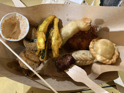 And the kicker? They proudly label themselves as “street food.” Judging by the cardboard serving trays, flavorless fare, and chaotic service, it might be more accurate to say this food fell through the cracks of the street into the sewer. We weren’t the only ones unimpressed — you could hear murmurs of discontent from other tables.