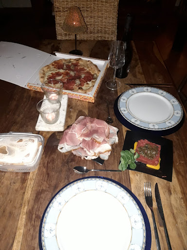 Inglese: Although I live in these areas I never went to eat in this restaurant before the Covid. Unfortunately I can not review the location since I have never been there, although I must say that from the pictures that are on the site of the restaurant looks very cozy and formal. I ordered a round pizza at the shovel, not gourmet, and I must say that the harmony of the dough of semolina covered with Fior di latte di Agerola and over the stretched of freshly sliced culatello was magical; The same dough of the pizza was used for the fried pinches ordered together with the shoulder of S.Secondo, also sliced just before delivery and slightly warm. Then you get to the highlight, Chianina tartare with sprinkling of black truffle and mustard sauce. All orders arrived at home (5 km from the restaurant) warm thanks to some polystyrene containers. The service was impeccable, accurate and very friendly. The round pizza at the shovel costs 13€, the Chopping Board costs 11€ and Chianina Tartare costs 17€. In my opinion the prices are consistent with those of similar restaurants and delivery costs 3€ and is available in the municipalities of Castelvetro, Monticelli D'Ongina and Caorso. Unfortunately I can not give five stars because I ordered a chopping board shoulder you S.Secondo with gorgonzola and pinched, but at the delivery was not present the gorgonzola for this category of restaurant my appearance to receive everything I ordered; Another reason why I added four is because it was not available cold eggnog with marsala and not even hazelnut foam with chocolate sauce that would have been perfect to crown the evening. The high quality and taste of the tartar was slightly altered by the excessive amount of salt. In my account you can find other useful reviews of places scattered in Northern Italy; don't forget to leave a like and see...