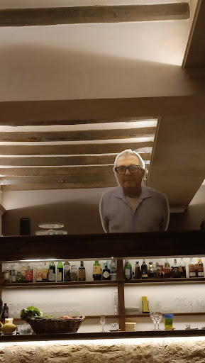 Il proprietario merita una menzione speciale, una persona veramente simpatica che ha aggiunto un elemento personale alla nostra visita. La sua presenza in sala, il suo modo affabile di interagire con i clienti e la sua evidente passione per la ristorazione hanno reso l'ambiente ancora più accogliente e familiare. La simpatia del proprietario non si limita solo alle sue interazioni personali, ma si riflette anche nell'atmosfera unica del locale. Un esempio perfetto è il grande ritaglio fotografico che ha esposto sopra il bancone del bar. Invece del classico specchio, i clienti si trovano di fronte a un'immagine del proprietario stesso, con i suoi caratteristici occhiali e un'espressione seria ma amichevole. Questo tocco di umorismo autoironico non solo strappa un sorriso ai clienti, ma contribuisce anche a creare quell'ambiente accogliente e rilassato che caratterizza Al Bistrot.