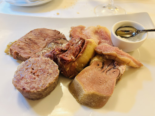 Il bollito, come secondo, era stopposo e asciutto: ci vuole impegno per sbagliare un piatto così semplice come un bollito di manzo 25€ a piatto!!!! Anche il pane servito era di qualità pessima: simile a quello per hamburger, industriale, stopposo e palesemente rimasto aperto per ore, del tutto inadatto a un ristorante che si definisce "tradizionale".