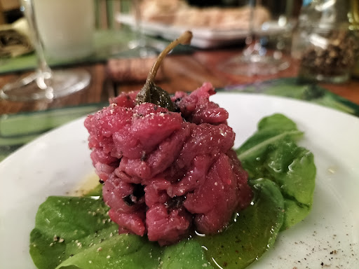 Read morePrima volta a cena in un posto nuovo, abbiamo prenotato. Accolti nel locale ci è stata data la possibilità di scegliere il posto che ritenevamo più gradevole, cosa che apprezziamo molto. Ci accomodiamo ad un tavolo il cui piano poggia su base di vecchia Singer, ed entriamo subito nel vivo del menu grazie ai racconti del ristoratore. Affidandoci alle sue sapienti indicazioni (premetto che quando ci ha nominato il tartufo, le tartare, la tagliata con porcini e il suo filetto eravamo già in estasi), ci lasciamo guidare dalla sua esperienza e conoscenza della cucina, niente di più appropriato. Mise en bouche a base di soufflé caldo di zucca e ricotta poggiato sopra a una crema di lenticchie, direi che è stata un'ottima presentazione della cucina. Antipasto di tartare con tartufo bianco, a seguire abbiamo diviso una tagliata con porcini e un filetto con cappella di porcino grigliata e adagiata nella parte superiore, tutto accompagnato da patate al forno eccellenti, fatte solo poche ore prima (non come accade il più delle volte che arrivano raggrinzite e già vecchie ancora prima di toccare il piatto da portata). Ad accompagnare queste piacevolissime ed eccellenti prelibatezze, un vino della casa, non uno qualunque, un San Giovese della zona di Cerreto Guidi, che non aveva niente da invidiare a tanti vini di costo e nomenclatura più pregiata che ho potuto assaggiare, inoltre si sposava benissimo con la scelta delle carni con un rapporto qualità/prezzo eccellente. Esito di questa serata? Abbiamo mangiato molto bene, ci ritorneremo sicuramente, anche il conto era perfettamente proporzionato alla qualità di ciò che ci è stato servito. Complimenti e grazie per la piacevolissima serata che ci avete fatto...