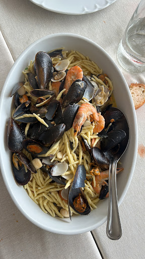 Read moreEsperienza fantastica. Sono andata con la mia famiglia per la festa della mamma e il proprietario ci ha proposto un’alternativa al menù tradizionale, ovvero il “menù degustazione”. Abbiamo optato per il secondo e ne siamo rimasti tutti soddisfatti (perfino mia sorella più piccola). Un antipasto variegato con pesce spada affumicato, alice e filo di zafferano, insalata di polpo, vongola gratinata e il tutto accompagnato da una crema al melograno (foto sotto). Oltre a questo antipasto, anche una teglia di pepata di cozze e una seconda con il “morzello di pesce”. Dopo, un bis di primi: una pasta allo scoglio dove il condimento non mancava di certo; dei ravioli ripieni di cernia e ragù di mare. I secondi erano particolarmente bilanciati. Poi un’abbondante frittura di calamari, anelli di totano e pesce. Molto leggera. Eravamo in 4 e il menù veniva 35€ a persona, con bevande, sorbetto e frutta inclusi (perfino il vino, di loro produzione molto buono e non pesante). Ci siamo trovati benissimo anche con il personale molto competente. Ci...