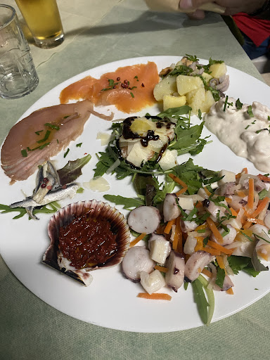 Da li in poi però è andato tutto per il meglio; consigliatissimo l'antipasto di mare della casa che consiste in circa 14 portate tra piatti caldi e freddi. Tra questi: gamberi in salsa cocktail, insalata di polpo, carpaccio di tonno e di salmone, impepata di cozze e molto altro ancora. In generale ottima sia la qualità del pesce che la preparazione.
