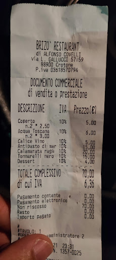Read moreVeramente veramente deluso le prime due volte che siamo andati in questo ristorante ci siamo trovati abbastanza bene, parlando qualità prezzo, ieri sera dopo aver prenotato per 12 persone alle ore 20 abbiamo ricevuto l’antipasto un’ora dopo, un antipasto veramente povero, dopodiché iniziamo ad ordinare per i primi e li arrivano i primi dubbi::: calamarata alla pescatrice oppure calamarata alla pescatrice, vabbè non avendo altra scelta prendiamo sta calamarata, abbastanza buona arriva il momento dei secondi, o dentice o dentice costretti a sottostare a quello che ci veniva detto dal caposala alla fine abbiamo preso in 4 il dentice e 4 seppie alla griglia di cui in due portate c’erano esattamente 2 gamberi di numero, 3 bottiglie di vino che sappiamo tt quanto costa arrivati al dolce non c’era niente di disponibile, arrivati al conto faccio presente che sicuramente c’è stato qualche errore si presenta qualcuno al tavolo e mi viene detto che non c’è nessun errore, vabbè a me dispiace mah pagar la bellezza di 660,00 e uscire alle 24:00 scontento a digiuno perché comunque non si è mangiato niente a parte la figura che ho fatto con gli amici che io ho invitato, bref::::::un consiglio ragazzi, datevi una regolata con i prezzi presentate una carta ai clienti affinché uno possano scegliere, è soprattutto il listino prezzi e non venite a dire qui quo qua diciamo che alla fine confronto a porto cervo i prezzi di Crotone sono leggermente più alti ma ci sta...