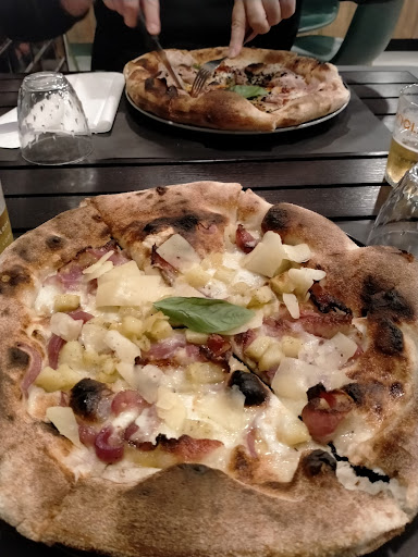 Prenotiamo in 4 un tavolo per le 9.45 e dopo esserci seduti alle 10 ordiniamo 4 antipasti, 3 pizze e un panino, quindi fino a qui tutto bene (o per lo meno quello che pensavamo noi). Dopo 30 minuti per 3 burrate e una crocchetta, quest’ultima ordinata al pesce, arriva alla salsiccia, quindi educatamente rimandata indietro. Dopo 15 min viene riportata al tavolo l’attesa crocchetta purtroppo la stessa di prima ma questa volta senza specificare a cosa fosse e lasciata sul tavolo . Accortami fosse la stessa rifiutata in precedenza , chiedo spiegazioni ad un’altro cameriere, sperando questo fosse più competente). In effetti arriva dopo altri 15 min l’ultimo antipasto atteso. Da lì il calvario: bambini che corrono, altri tavoli che si lamentano dell’attesa e come non bastasse lo stesso primo cameriere che viene a chiedere spiegazioni su una fantomatica pizza modificata (della quale noi non eravamo a conoscenza). A questo punto penso che la cosa migliore sia mettere qualcuno di competente a servire e che sappia quanto meno dare spiegazioni sui piatti ordinati così da non affermare al tavolo “ siete voi che avete fatto un cambio pizza? e alla domanda quale pizza rispondere ”a boh , io ho sentito vociferare così” Quindi in conclusione quando un tavolo dopo un’ora e quaranta che aspetta 3 pizze e un panino si stufa e va in cassa a chiedere gentilmente di fermare l’ordinazione e pagare ciò che hanno consumato, per favore , evitate di far pagare il coperto di cui non hanno usufruito , soprattutto per la poca competenza di quelli che avrebbero dovuto essere l’essenza del coperto, senza trovare scuse sull’attesa subita (in quanto sabato, quindi ovvia e sopratutto a quanto dicono loro anticipata in fase di ordinazione, ma di cui nessuno ricordava nulla ) e cercare di rimediare offrendo un amaro a persone che non hanno cenato. Ps: ovviamente la crocchetta era al pesce e non alla salsiccia , ma a questo punto non mi sono più sentita...