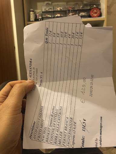Read moreCi sono stata solamente una volta, ma so che non ci andrò più in quanto eravamo sei persone decise a prendere l'offerta che se non ricordo male era di 10,00€ ( panino più bevanda ) ma 3 persone anzichè prendere quella compresa hanno scelto la birra alla spina cosi da far lievitare un po il prezzo. Poi abbiamo ordinato delle zucchine e delle bombette divise x6 e 2 persone hanno preso un dolce e altre 2 l'amaro e il conto finale é stato di 120 euro compreso di sconto altrimenti stavamo sui 150€. troppo caro per ciò che abbiamo mangiato anche se le cose assaggiate non erano male. tornerò solo quando e se abbasseranno i prezzi....