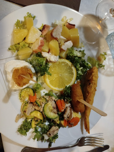 Read morePurtroppo aspettative alte ma deluse. Ambiente per quanto lo sforzo sia apprezzato per rendere l'esterno piacevole rende il tutto invano per via della città molto sporca purtroppo! Non voglio assolutamente pensare che poi il servizio cordiale ma un filo truffaldino, fosse dettato dal nostro accento poco locale, benche io sia nato proprio in questa città!! Antipasto con carrellata di assaggi per due persone, arriva un piattino di 6 assaggini (per carità anche piacevoli) ma una polpettina di pesce ed una di verdure che ho dovuto dividere meccanicamente con mia moglie. Premetto che con mia moglie divido tutto nel bene e nel male, ma se prendo un antipasto venduto per due, non mi aspetto che debba dividere la pietanza dal piatto/ino di portata. La cosa più buffa è che alla richiesta di spiegazioni, nell'imbarazzo dei camerieri, sono riusciti a giustificare la cosa dicendo: per non appesantirvi abbiamo fatto uno strappo alla regola riducendo la quantità per una persona anziché due come avrebbe dovuto essere, per non appesantire la cena e permettervi di assaporare anche le altre portate! Carineria assoluta, ma la cosa la concordi con il cliente, perché quello si aspetta l'ordinato e non la sorpresa (ma chi te lo ha chiesto? Avevo pure fame quella sera). Il tutto poi camuffato dal conto senza dettagli cercando di nascondere il prezzo da due portate, come se uno i conti non se li sapesse fare! Sono in vacanza e per due spicci certo non mi metto a discutere, preferisco farvi contenti li per li! Peccato avete perso dei clienti, ma la cosa poco importa ad un ristoratore, vero? L'importante è mordere la mela e poi gettarla! Marketing imbarazzante. Comunque nella generosità ho lasciato anche 2€ di mancia di più sarebbe stato imbarazzante come...