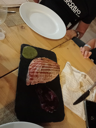 Read moreSiamo giunti alla trattoria e all'ingresso non c'era nessuno che ci accogliesse e facesse strada, la sala era vuota senza tavoli, siamo andati avanti cercando i tavoli e alla fine siamo usciti dall'altra parte dove sotto alcuni porticati erano stati messi i tavoli. L'atmosfera non era malvagia anzi ma eravamo in una zona di passaggio pedonale. Una volta seduti arriva subito il cameriere per l'ordine delle bibite mentre per le portate dobbiamo aspettare un altro addetto che dopo una attesa non proprio breve arriva e ci chiede se siamo pronti, alla nostra risposta " si" ci dice arrivo subito e ci abbandona lì, dopo una ulteriore attesa non proprio breve ritorna e ci pone la stessa domanda seguita dalla stessa risposta! Indovinate? Se ne va dicendo arrivo subito da voi!! Ma ci prende in giro?? Dopo un'altra attesa il primo cameriere viene a chiedere se abbiamo ordinato e ovviamente diciamo "no" e ci prende lui l'ordine. Ordiniamo un antipasto a Ra ghiazza , un primo spaghetti con pistacchio e gambero viola ( o altro colore) , tonno con salsa di cipolle, e per i bambini un hamburger e polpette entrambi accompagnati da patatine fritte. Attesa infinita .... Arriva l'hamburger ( piccolo e rinsecchito che MC Donald ai presenta alla stessa maniera ma non l'ho assaggiato) e le polpette che erano buone. Dopo ancora attesa infinita inizia ad arrivare l'antipasto e arrivano delle cozze in una piccola ciotola ( non malvagie tranne per una che mi ha rovinato la bocca). Insieme alle cozze arrivano delle polpettine fritte( come quelle dei bambini). Arriva dopo un periodo di tempo ormai indefinito il piatto con l'antipasto... Antipasto di mare ma senza mare!!! Erano assaggi vari prevalentemente di polpi e seppie accompagnati da verdure ... Ma in un antipasto di 20€ trovavi circa 10gr di prodotti ittici. Erano buonissimi ma assolutamente scarsi in termini di quantita'. Nel momento in cui pensavamo che il terrore dei tempi di attesa fossero ormai superati, il primo non esce più!!! Chiediamo i tempi e dopo 20 Min arrivano gli spaghetti al pistacchio (pistacchio non pervenuto, sale non pervenuto) e giusto 4 pezzetti di gamberi. Una volta finito inizia a salire l'ansia per il secondo... 20 Min e oltre di attesa e vediamo il cameriere che si avvicina e ci chiede se gradiamo il dolce ... Il dolce??? Stiamo aspettando il secondo!!! Altri 15 Min di attesa che si aggiungono e arriva questa bistecca di tonno che si presenta molto bene....assaggiamo e devo ammettere che era buona peccato che andando verso il centro il tonno fosse crudo e freddo di frigo!! Lo lasciamo nel piatto e facciamo presente la cosa e si propongono di rifarlo ma visto il nervoso e i tempi abbiamo preferito andare via e chiedere il conto. Ci hanno gentilmente tolto dal conto il costo dei bambini per il disagio. Morale della favola ... Sono uscita e ho mangiato un panino ad un furgoncino ambulante perché ho fatto la fame! Ripeto le materie erano buone e saporite ma porzioni inadeguate al prezzo soprattutto per il quantitativo di pesce realmente presente. I camerieri che ci hanno servito sono stati gentili ma tempi di attesa disumani. Siamo entrati alle 20:30 e siamo usciti alle 22:30 per un antipasto, un primo e un secondo+2 porzioni di patatine+1hamburger e 4 polpette. Allego foto del panino che ho mangiato dopo il...