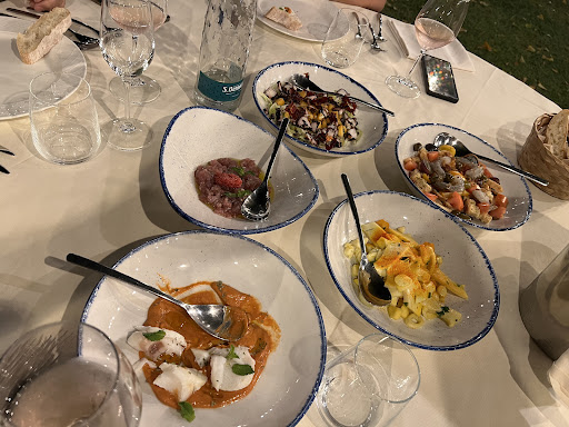 La ristorazione è un’altra cosa. Location pessima e’ solamente apparenza.impianto elettrico e decori fatiscenti e decori natalizi nel mese di aprile. Mi dispiace per il cameriere perché è un ragazzo, ma il personale va preparato e non buttato lì all arrembaggio . Dagli antipasti fino al primo ci hanno fatto attendere perché dovevano arrivare altre persone che avevano prenotato così da poter preparare per tutti “cose da pazzi”. Siamo arrivati alle 12.45 e siamo andati via dalla disperazione alle 15 non avendo ancora completato il pranzo. Il conto salatissimo per due assaggi di primi e qualche antipasto ho speso per 4 persone 220 euro. La proprietaria si è giustificata dicendo che il conto era così perché nei primi c’era l’astice! In quali primi??? Nei nostri c’era solo il profumo dell astice e poi cara proprietaria non si trattano così i clienti malcontenti ci vuole un certo …… E dire che eravamo andati per poterci fare la comunione di mia figlia Neanche per sogno L’unica nota positiva che nei piccolissimi assaggi di antipasti il polpo è la seppia era freschi A poi dimenticavo…. La proprietaria siccome non sapeva neanche darmi il resto e farsi i conti ci ha raggiunto vicino la mia macchina dicendoci che si era sbagliata e c’era anche da pagare una torta desser Se non c’era arroganza e pretesa non avrei sicuramente recensito, spero che questo faccia cambiare atteggiamento...