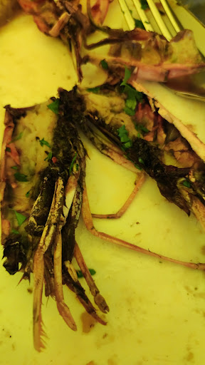 Capretto con pastone di patate e carciofi andato per ore ma mai mescolato, visto che alcune patate erano sciolte ed altre erano mezze crude. 2 piatti con 8 gamberi che avevano il super potere di essere mezzi crudi e mezzi bruciati (allego foto).