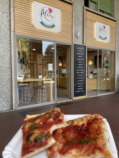 Cosa puoi trovare di buono da Alice? Pizza e solo pizza...... ma di tutti i tipi! Dalla semplice margherita a quella più sofisticata fino a quella con la nutella da consumare come dolce. Come quella fatta da Alice a Cuneo c'è solo Alice. Sarà questione di un alchemica composizione di ingredienti di qualità, di impasto fatto bene, cottura e della capacità del pizzaiolo.... non lo so, ma il risultato è eccellente. Sta di fatto che è "croccantina" sotto e morbida sopra è una vera delizia. Il negozio è di dimensioni medio piccole, ma ben organizzato. Volendo è possibile acquistare anche bibite varie e birra. Per uno spuntino veloce è possibile consumare all'interno nell'apposita area attrezzata con mensole e sgabelli. D'estate invece seduti al tavolo, nell'area antistante l'ingresso del negozio. Non è previsto servizio al tavolo. Il personale è molto disponibile e gentile. Chi desidera (lo consiglio), può fare la tessera fedeltà con raccolta punti che dà diritto a sconti sulle consumazioni successive. Se desiderate acquistare mezza teglia di pizza consiglio di fare l'ordine telefonicamente o tramite sito. In tal caso il costo sarà fisso e molto più ...