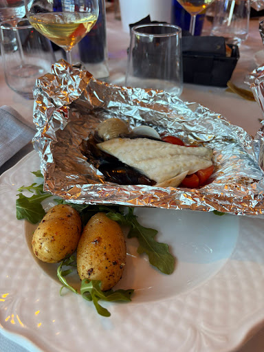 Read morenon appena arrivati ci siamo immediatamente accorti delle posate ancora sporche e delle tovaglie e dei copri sedia già macchiati. guardando i lampadari ragni e ragnatele ovunque, dunque già l'inizio non è stato dei migliori. ad ogni portata un piatto diverso ciascuno, chi fondo, chi piatto, già mi ha lasciata perplessa. l'antipasto servito avrebbe dovuto essere del vitello tonnato con la sua salsa, invece ci hanno servito 3 fette e dico 3 precise, fette di roastbeef con salsa tonnata. dopo 55 minuti, finalmente ci è stato portato il primo : penne scotte con sughetto liquidissimo, pomodorini, zucchine, cipolle e 2 cm di gamberetto. solamente dopo 50 minuti, il secondo, un arrosto duro come una pietra accompagnato da una patata cotta al forno, con maionese al centro. la cosa comica è stata che eravamo una tavolata di 25 e c'erano persone con una patata gigante nel piatto e altri con una di dimensioni notevolmente minori. capisco che madre natura non possa dare alla luce 25 patate uguali, ma a sto punto si opta piuttosto per tagliarle a dadini. infine il dolce, unica parte salvabile.