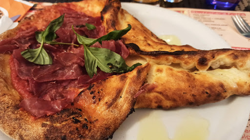 Dopo una breve attesa arriva finalmente un capolavoro d'arte bianca (Cornicione Goloso mi pare fosse il nome, ma potrei non ricordare bene). Parte di questa pizza ha il cornicione farcito con gorgonzola, funghi e olio al tartufo. Sulla superficie è un'euforia di pomodoro, bresaola e mozzarella. L'impasto è importante ma leggero, scende e non lo senti. Finisco mangiando l'ultima fetta ancora tiepida: nonostante io non sia un velocista, la pasta è rimasta morbida ed in temperatura.