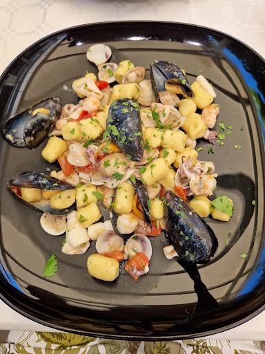 Read moreCena lunedì 20 giugno, entriamo alle 19.40, siamo unico tavolo (due adulti, un bambino2 anni e mezzo e una bambina 8 mesi), quando si tratta di scegliere i piatti dal menu chiediamo chiarimenti su alcune differenze nei condimenti di pesce ma la risposta è che sono di pesce, nessuna premura di chiedere in cucina, ordinati gnocchetti allo scoglio per due, porzione scarsa (la mezza porzione di gnocchi per il nostro bambino di 2 anni era identica), pesce molto poco, ordiniamo frittura in due con patatine, il contorno arriva circa 15 minuti prima della portata, una volta che hanno capito che mancava la porta principale sul nostro tavolo, chicca della serata il titolare che prende ordinazioni al tavolo di fianco con pantaloni vita bassa mostrandoci il posteriore. Conto euro 60 per due primi di pesce, un secondo di pesce e porzione bambino di primo, da bere acqua e 1/2 vino bianco in caraffa. Prezzo fuori luogo per qualità pietanze e servizio A voi le conclusioni...