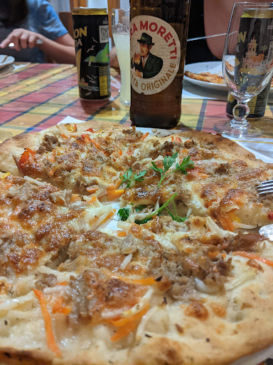 Penso abbiano battuto tutti peggiori record riguardanti la pizza... Mi spiace solo non poter inserire la foto della pizza perché basterebbe guardarla per capire quanta poca cura le sia stata dedicata. Piccola e con una forma circolare priva di imperfezioni lascia pensare a quelle surgelate. Ordinata salsiccia, cipolla e patatine aprendo il cartone ti rendi conto che non si capisce nemmeno gli ingredienti di cui è composta. Le patate c'erano, surgelate, mai fritte e quindi ancora indecenteme crude. La salsiccia se c'era non sapeva di nulla, non si sentiva alcun sapore.