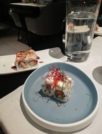 Read moreSiamo venuti a cena in questo sushi un venerdì sera perché ci è stato consigliato e il mio fidanzato c'era già stato. Noi abbiamo prenotato e nonostante ci fossero tavoli liberi è consigliabile la prenotazione. Il locale è situato nei dintorni della zona commerciale di Curno ma comunque in un luogo tranquillo. Siamo arrivati per le 20:15 e il parcheggio era abbastanza libero e abbiamo trovato posto. Già dalla facciata estera si percepisce già l'eleganza e invita il cliente a immaginare come sarà l'interno. Appena entrati ci fanno accomodare al tavolo e ci danno il codice d'acesso per ordinare tramite la loro web app. Dopo aver fatto i primi ordinini, ci siamo soffermati a osservare l'arredamento interno, che ha superato le mie aspettative. Spesso ma sottovalutato ma non questo caso sono i bagni che sono molto lussuosi e dal design moderno. Già dopo poco tempo sono arrivate le prime portate e nonostante siano arrivate in tempi brevi questo non ha risentito sulla qualità dei piatti. Il menù cena era molto vario e ricercato e in particolare alcuni piatti come per esempio Anatra al limone. In generale i piatti classici del menù sono di gran lunga di qualità superiore rispetto a quelli di altri ristoranti di sushi. Il servizio è stato veloce ed efficace. Complessivamente l'esperienza è stata molto gradevole, servizio ottimo e veloce per via dell'utilizzo della loro web app e un organizzazione eccellente. Lo consigliamo fortemente a coloro a cui piace la...