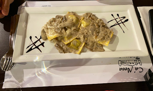 Read moreEntrando passiamo davanti alla cucina (aperta) e dentro c'era della gente che si insultava pesantemente urlando. Non il massimo che i clienti vedano certe cose. Ci accompagnano al tavolo, il posto di per sé è carino. I camerieri faccio fatica a definirli gentili, modi di fare un po' schietti. Chiediamo 1 antipasto e 3 pizze. Ci portano prima le pizze che l'antipasto. Per quello che riguarda la pizza ognuno ha i suoi gusti, è vero. A me personalmente non piaceva granché: crosta enorme e gommosa, l'interno invece aveva la base sottile e fiappa, il condimento era troppo e slegava completamente dall'impasto, di conseguenza si disfava completamente quando cercavi di mangiarla e nel mezzo si formava un po' di brodaglia/condensa. Ah e i coltelli non tagliavano assolutamente niente, ho sudato per riuscire a tagliare delle fette. Un genere di pizza che ho già mangiato da altre parti, e per quanto ognuno abbia i propri gusti non capisco come alcune persone la possano definire "magnifica", chissà cosa sono abituati a mangiare a casa loro. Mentre cercavo di tagliare quella gomma, poco distante c'era una griglia esposta al pubblico con una bistecca che andava a fuoco e le fiamme cominciavano ad alzarsi pericolosamente. Non c'era nessuno a guardarla, chissà dov'era finito il cuoco... forse a litigare con qualcuno. Il dessert era meglio, abbastanza buono.