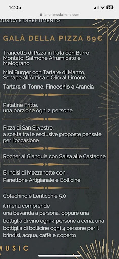 Read morePurtroppo, l’esperienza del cenone di Capodanno presso "Anonimo" di Dalmine è stata al di sotto delle aspettative. Il personale si è dimostrato poco cortese, con atteggiamenti che hanno reso l'atmosfera tutt'altro che accogliente.