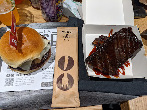 Read moreIo e i miei fedelissimi colleghi universitari abbiamo scelto “La Braseria On The Road” per il nostro pranzo rude e mascolino del venerdì. Il nostro palato è stato deliziato da degli ottimi e caserecci hamburger. Una delle critiche che si può portare a questo locale è che i panini sono grandi quanto il nucleo di un atomo di idrogeno (per pochi). L’accoglienza è stata bislacca, infatti dopo pochi secondi della nostra entrata nella locanda è stato fatto partire un dj-set reggaeton ai livelli del “vida loca” al Vog Club. Occhio alle pubblicità ingannevoli attira clienti infatti, appena fuori dall’entrata, c’era una scritta che riportava “tanto fumo”, io e miei confratelli ci siamo fatti prendere dall’entusiasmo e siamo entrati. Tutto sommato locale consigliato (anche perché...