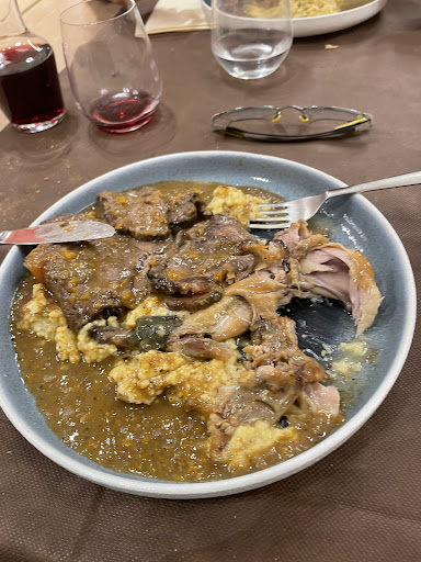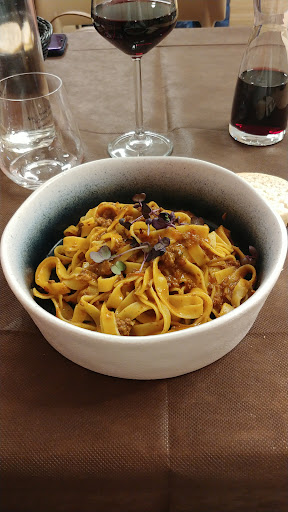 Abbiamo cenato in 3. Io mia moglie e mia figlia. Era sabato sera, locale pieno ma servizio veloce. Il locale si presenta con un parcheggio privato con qualche posto auto ma con la presenza lungo strada di poter facilmente parcheggiare gratuitamente l'auto. Esteticamente il locale è bello e curato. Il menù presenta ampia scelta di piatti tipici e pizze di vario tipo. Soffermandomi sulle mie scelte ho gustato delle ottime tagliatelle al sugo di cinghiale e una altrettanto ottima tagliata rucola e grana. Carne gustosa e tenera, nonostante avessi chiesto che fosse ben cotta quindi sicuramente di qualità. Anche le pappardelle al sugo di cervo prese da mia moglie hanno riscosso successo. Nota di merito per la presenza del menù bimbi che per soli 10 euro propone pasta al burro, sugo, pesto o ragù di carne e milanese tenera con patatine. Ho scelto di bere il vino della casa, un ottimo merlot che non ha deluso l'abbinamento con i piatti. I prezzi assolutamente ragionevoli e rispecchianti qualità e quantità dei piatti proposti. Eravamo di passaggio per visita a Leolandia ma se ci fosse l'occasione risceglieremo il locale senza dubbio. Cortesia e gentilezza di tutto lo staff ha...