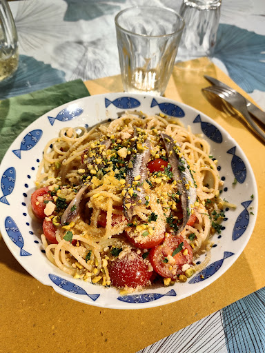 Read moreIn cerca di un ristorante dove mangiare qualcosa di tipico mi imbatto in questo. Locale piccolo e semplice, con uno stile rustico molto carino. Consigliato assolutamente prenotare in anticipo perché i posti sono pochi. Comunque menù molto particolare e fortunatamente non uno di quei ristoranti con centinaia di piatti ma fatti male. Prezzi nella norma considerando che sei a pochi passi dalla spiaggia. Il personale è molto gentile e disponibile, sempre sorridente e vivace, ti lasciano proprio una bella impressione. Ma passiamo al punto più interessante, i piatti, ho provato le acciughe marinate e il loro famoso spaghetto, che dire se non wow, veramente buoni e porzioni abbondanti. Insomma, se siete di passaggio non fatevi sfuggire questa piccola perla, non ve...