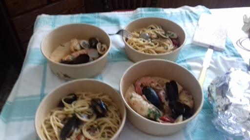 Read moreEccezionali! In un momento così triste per il paese, dato l'elevato numero di contagi Covid, ho apprezzato che mi sia stata data la possibilità di ordinare e far consegnare pasti caldi ai miei cari non raggiungibili. La consegna è avvenuta rispettando le norme di sicurezza, i piatti sono arrivati già porzionati, abbondanti e ottimi. Molto gradita è stata la zuppa di pesce accompagnata da pane bruschettato. Rapporto qualità prezzo molto buono: € 17,00 1 primo (spaghetti ai frutti di mare) 1 Zuppa di pesce con contorno consegna a domicilio.