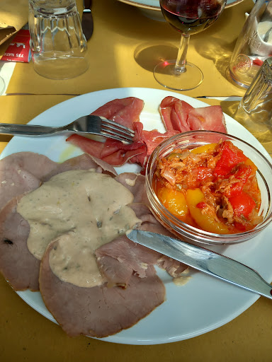 Alors lĂ comment vous dire ...cette surprenante et magique dĂ©couverte sur la route du retour vers la France. Ce que nous avions pris pour un petit routier s avĂšre ĂȘtre une trĂšs belle adresse. Celle d une cuisine goĂ»teuse, familiale , fraĂźche ce que laisse deviner une carte rĂ©duite mais adaptĂ©e Ă tous les goĂ»ts. Toutes les tables Ă©taient occupĂ©es... deux beaux plats un quart de vin un prosseco et deux cafĂ©s pour 35 euros...vraiment si vous passez par lĂ arrĂȘtez-vous. Il y a aussi une vente de produits locaux et lĂ encore les...